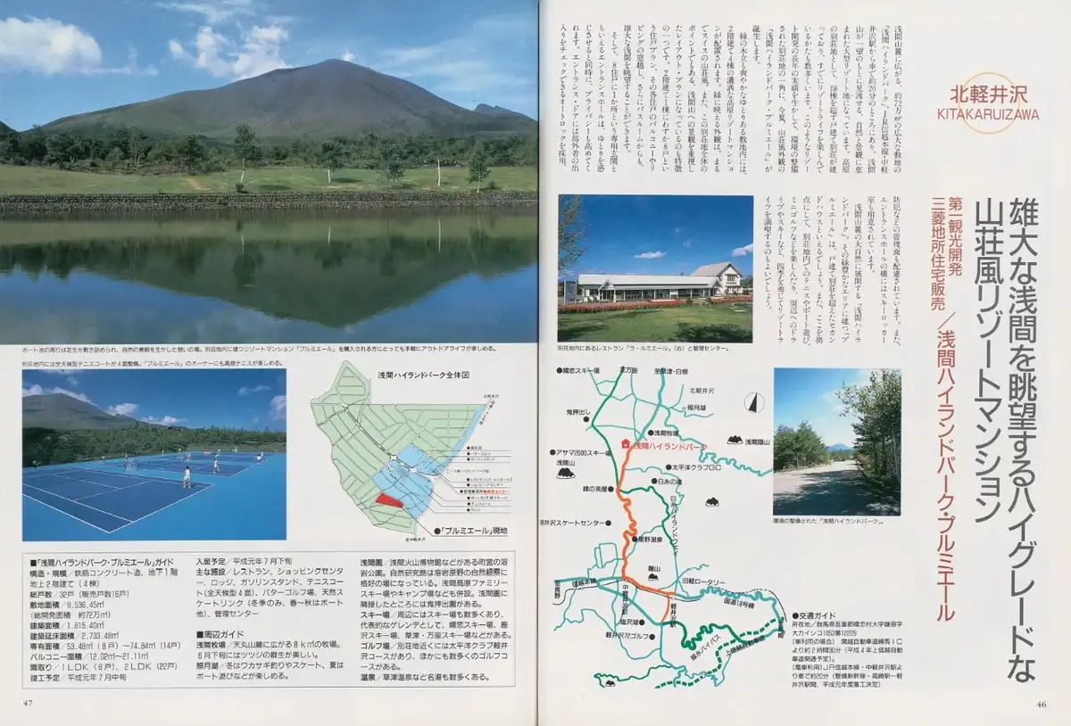 これは22室という集合別荘を、部屋単位で区分所有の共有制ガラ権として分譲したものでした。鬼押ハイウェーの中間地点、鬼押出しの付近から別荘地への進入路があり、Googleマップにもピンが立てられています。筆者は残念ながら現地でうまく発見できず、この建物との対面は次回取材時の課題となりました。