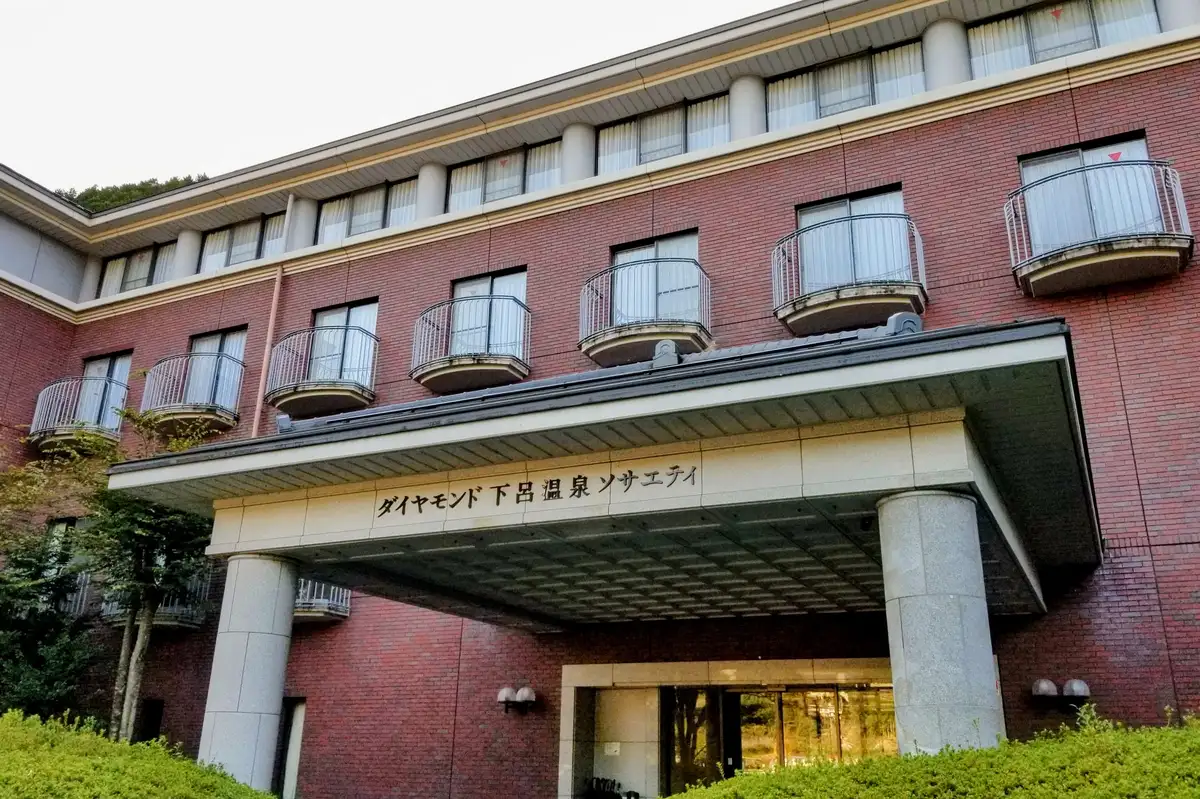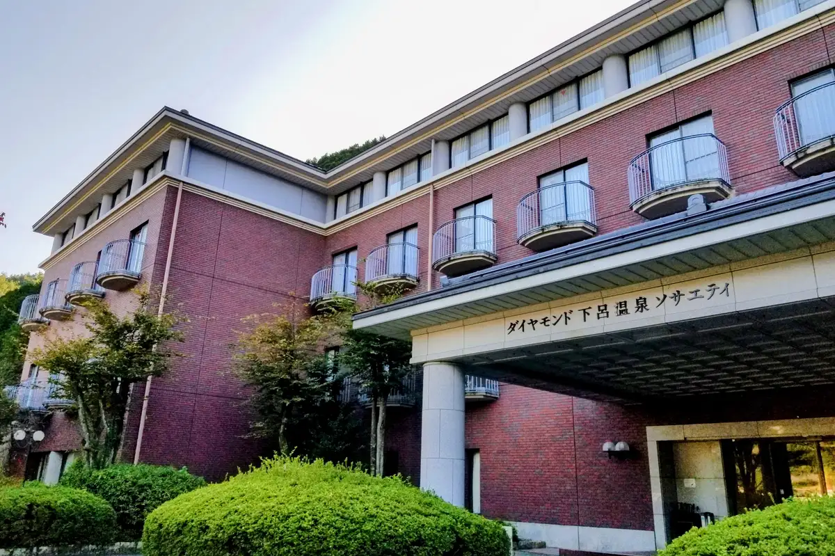 すぐに見えてくるのが、丘の上にどっしりと鎮座する煉瓦貼りの「ダイヤモンド下呂温泉ソサエティ 10」です。駅から徒歩8分、送迎バス2分という駅チカです。ダイヤモンドソサエティについてはこれまでも取り上げてきましたが、本施設はハードウェアも立地条件も最上位にランクして良い「選ばれし者」の風格でした。