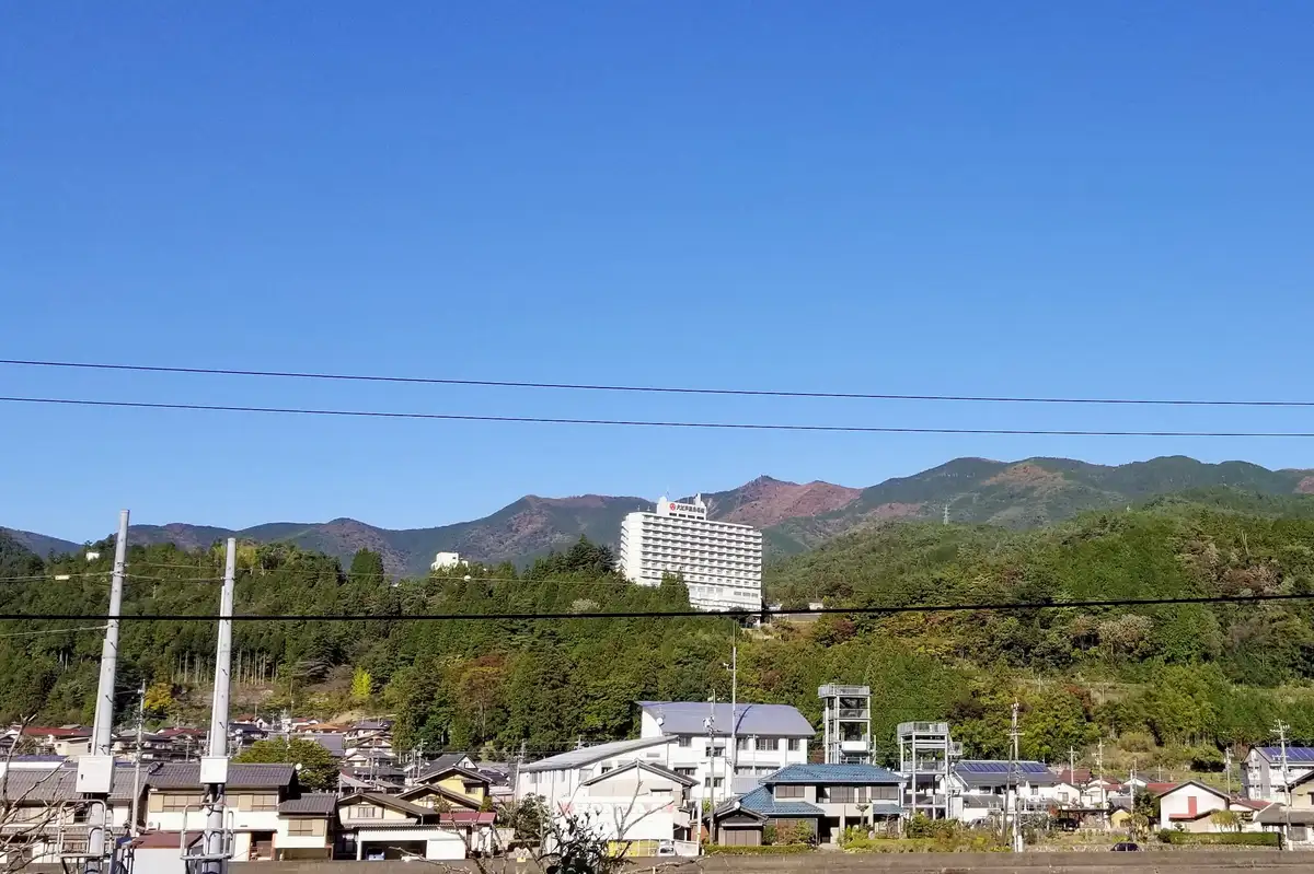 今回の旅の最後は、駅前エリアから離れて北上します。「ザ グランリゾート下呂 13」をナビに入れ、川沿いを上流に向かって走ります。ほどなくたどり着いたのは、閉鎖施設でした。