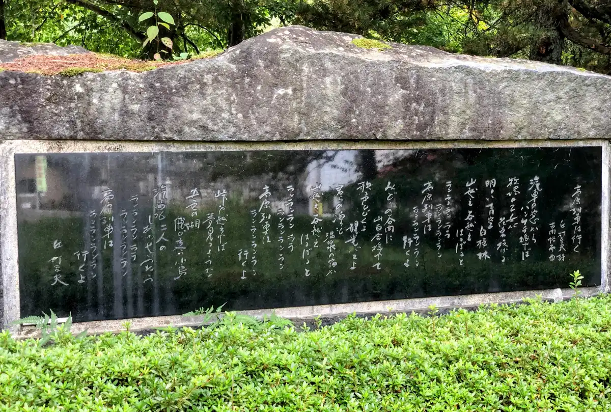 1954年には本鉄道をイメージした「高原列車は行く 10」が大ヒット。旧沼尻駅舎近くには歌碑が建てられています。