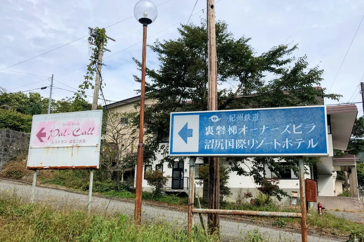 その名は「沼尻国際リゾートホテル」またの名を「紀州鉄道 裏磐梯沼尻オーナーズビラ」と言います。現在は完全に閉業済みですが、廃墟には至らず、多少の手入れが継続されている様子が感じられました。