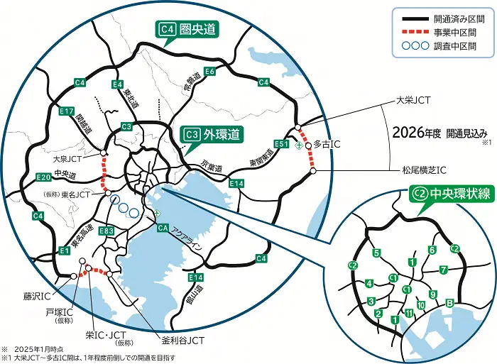 一方で北総エリアから房総に向かうには、道が混み、アクセスがイマイチでした。しかしここに来て、首都高中央環状線や埼玉県側からの外環高速完成に加え、数年後にはその外側の圏央道全通が控えています 7。都心及び関東西側からのアクセスが改善され、ストレスなく到達できるようになるでしょう。