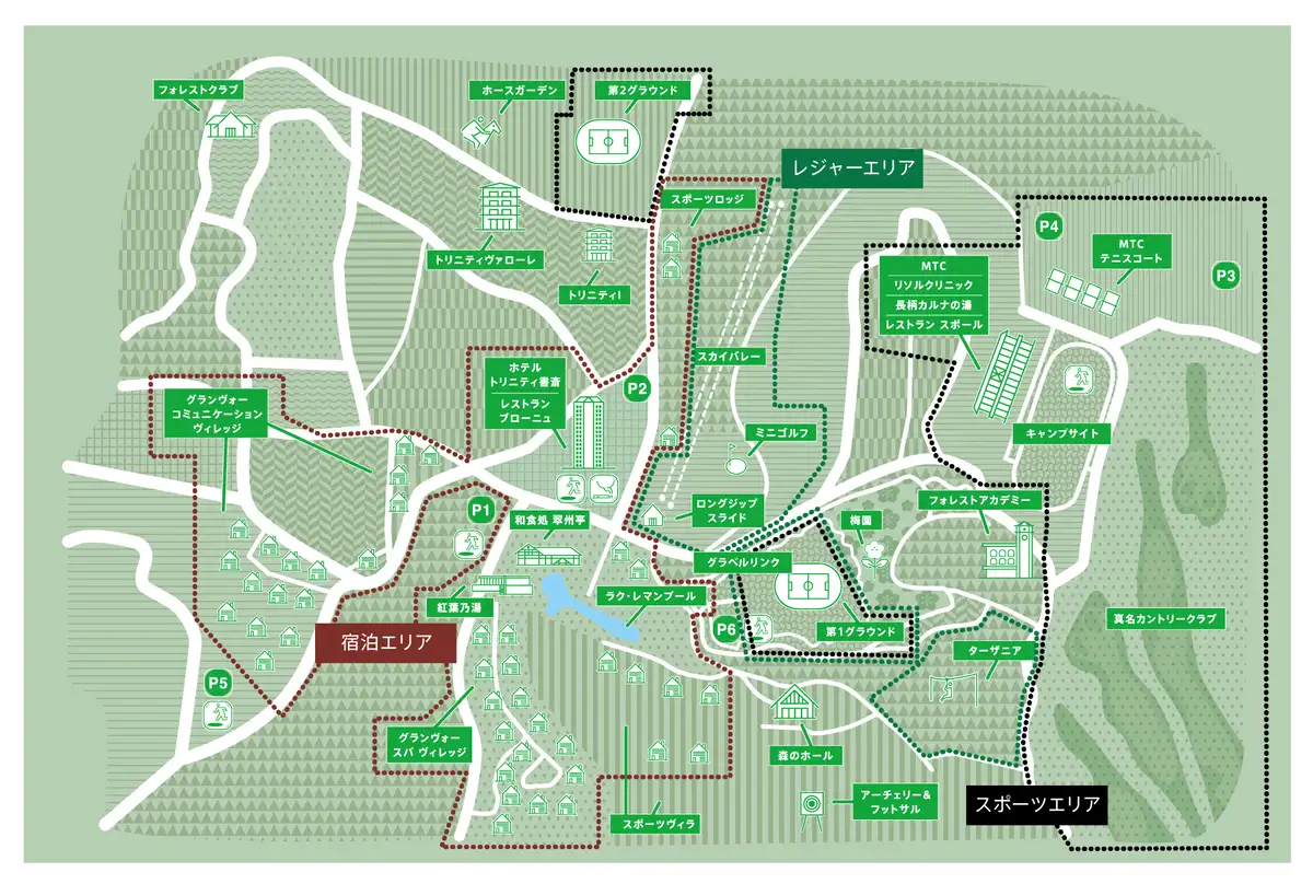中心となるトリニティ書斎以外の施設について少し付け加えます。大元の施設として日本エアロビクスセンターがあったのですが 18、これを中心とするスポーツゾーンが広大なエリアの東側、そして西側は宿泊+リラックスゾーンとして位置づけられており、2020年にリニューアルが行われて現在の名称「Sports & Do Resort」が冠されました 18。